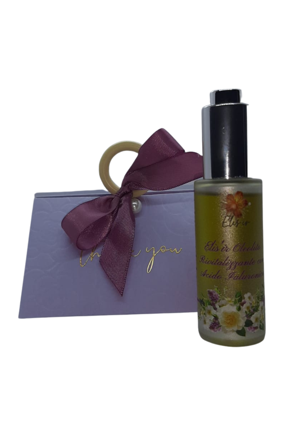 L' Olio Elis'ir Rivitalizzante nasce dalla sinergia tra un olio d' oliva di prima qualità e piante officinali. Elis'ir viso/corpo nutre e cura la pelle in profondità, combattendo l' invecchiamento cutaneo, svolgendo un' azione idratante, rigenerante, tonificante e antiossidante sulle pelli mature. Sfruttando i principi attivi delle bacche di rosa canina, attenua le macchie cutanee restituendo alla pelle elasticità e luminosità.